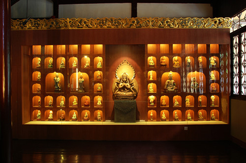 镇江西津渡观音文化展示馆是由镇江城市建设投资公司投资,镇江西津渡建设发展公司具体策划,在南京博物院和南京大学专家教授指导之下,经江苏先达装饰有限公司承建完成。整个展览馆由观音洞、铁柱宫和小山楼三部分组成,使用了浮雕、壁画、漆画、油画墙、木雕、泥塑、铜雕、玉雕、石雕、沙盘、多媒体电子图书、景箱等多种形式全面地向观众介绍观音文化。