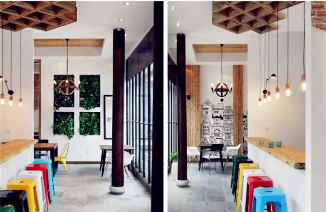 西津渡小码头街131号:同乐家庭餐厅,将北欧风掺杂不同的文化元素,打造一个亲切,又让人流连忘返的就餐环境,餐厅装潢很现代,开放式厨房、圆形拱门。